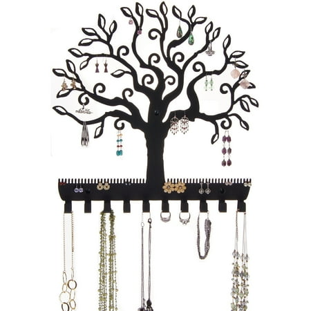 Angelynn S Hanging Jewelry Organizer Wall Mount Earring Holder Necklace Rack Closet Storage Angelynn S Tree Of Life Black Walmart Com
