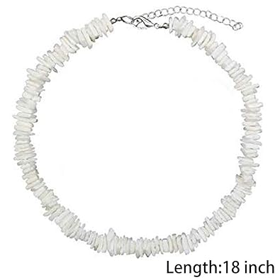 Urskytous Puka Shell Necklace 90s White Conch Choker Necklace Dainty Cowrie Chain Pendant Hawaiian Chip Seashell Statement Collar Jewelry With