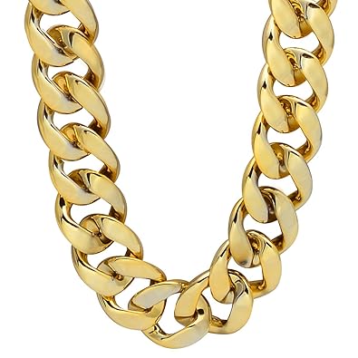 Tuokay 18k Faux Gold Chain Necklace 90s Punk Style Costume Jewelry Hip Hop Turnover Chain 18 Inches 10mm