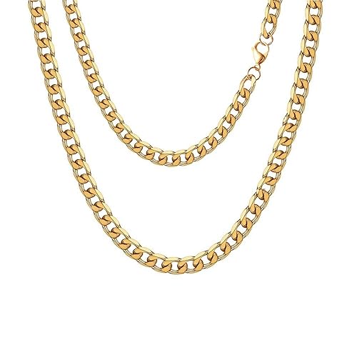 Tuokay 18k Faux Gold Chain Necklace 90s Punk Style Necklace Costume Jewelry Hip Hop Turnover Chain Necklace Stainless Steel 24 Inches 10mm