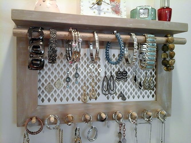 Costume heirloom and newly acquired valuables ranging from necklaces to earrings to rings and even bracelets and anklets. Socal buttercup rustic jewelry organizer wall mounted hanging necklace holder wall mounted jewelry hanger farmhouse wood jewelry display storage for necklaces bracelets and stud earrings 48 out of 5 stars 27.