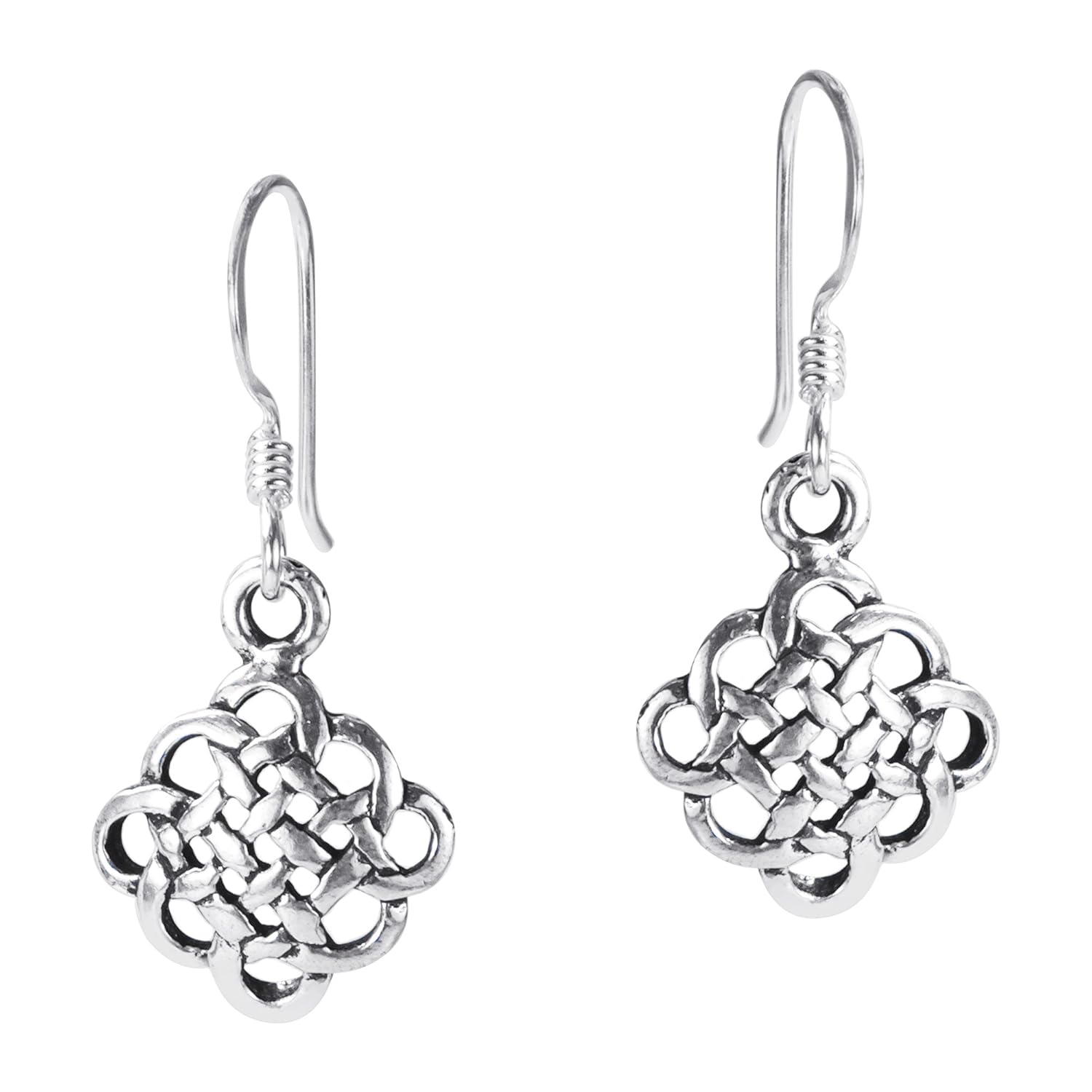 925 Sterling Silver Alluring Celtic Knot Fish Hook Dangle Earrings