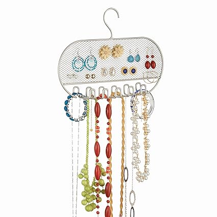 Marcus mayfield hanging jewelry organizer closet storage with satin hanger 2 sided for jewelry hair accessories makeup 1 black dress pink satin hanger 24 pockets 17 hooks 43 out of 5 stars 574. 9 pack adhesive jewelry earring necklace.