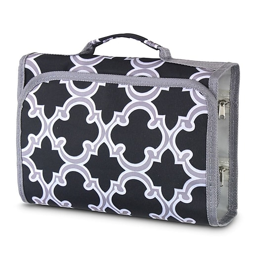 Zodaca Fashion Jewelry Hanging Travel Business Trip Organizer Multi Functional Roll Zipper Bag Quadrefoil Black