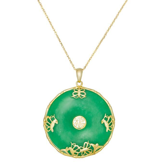 Kwan Collections 36mm Donut Shaped Green Jade Good Luck Butterfly Pendant W 18 Rope Chain
